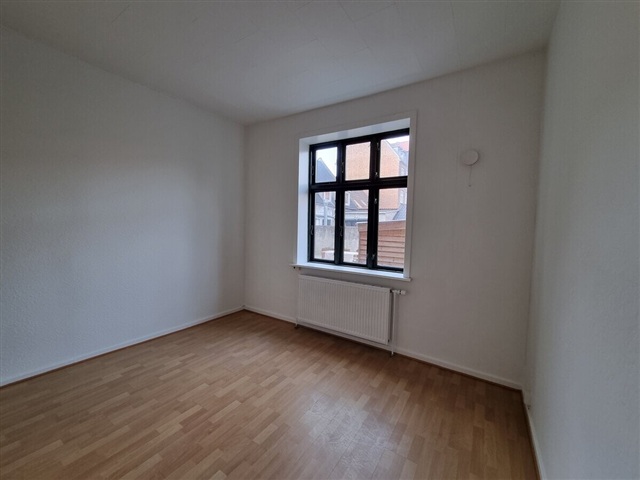 Beliggende i hjertet af byen, blot to minutter fra Kongensgade, biblioteket og togstationen. Boligens entré byder på et lyst og imødekommende rum. Den rummelige stue giver rig mulighed for varieret indretning. Køkkenet er helt nyt og udstyret med opvaskemaskine, mens badeværelset er fuldstændig moderniseret med en ny bruseniche. Gulvene er nyligt lagt, og væggene nymalet. Til ejendommen hører desuden et cykelskur, dørtelefon samt adgang til fælles vaskefaciliteter.