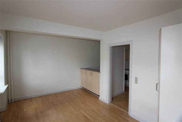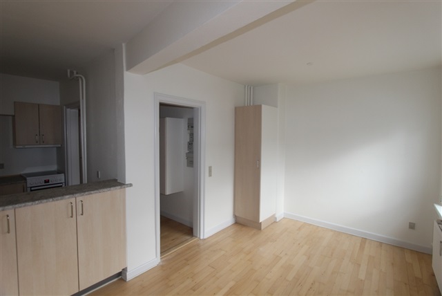Denne lejlighed består af et enkelt rum, hvor køkkenet er delvist integreret og åbent mod opholdsarealet. Stuen og soveområdet er samlet i samme rum og har et gulv af lakeret bøgeparket. Badeværelset er belagt med hvide fliser, og der er rig mulighed for opbevaring takket være flere skabe. Det skal bemærkes, at det ikke er tilladt at holde husdyr i boligen.