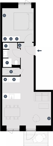 Denne lejlighed byder på et rummeligt 2-værelses boligmiljø, hvor man træder ind via en mindre entré, som har plads til opbevaring af overtøj. Indenfor findes et soveværelse med integreret skabsplads samt et stilrent og minimalistisk badeværelse med fliser både på gulvet og i brusenichen. Badeværelset er udstyret med gulvvarme og en vaskesøjle. Resten af boligen er beklædt med smukke egetræsgulve og ligeledes gulvvarme. Køkken/alrummet fremstår med et moderne, hvidt Svane-køkken, komplet med alle nødvendige hvidevarer, og rummet rummer plads til både spise- og opholdsafdeling i åben forbindelse med lejlighedens altan, hvor der er mulighed for at nyde morgenkaffen.Ideen bag boligerne tager udgangspunkt i konceptet Simple Living, der fokuserer på ro og overskud til at prioritere de væsentlige ting i livet. Her handler det om at leve med færrest mulige ejendele og kun beholde det, der bruges i det daglige. Denne filosofi afspejles i lejlighedernes effektive og nøje planlagte indretning, som understøtter en enkel livsstil.