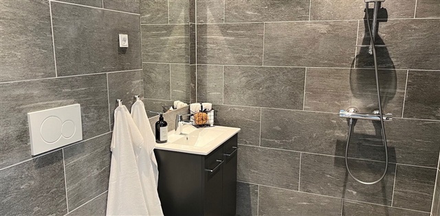 Denne 1-værelses lejlighed, der blandt andet byder på en altan, åbner direkte fra hovedindgangen op til køkkenområdet, som er udstyret med elementer fra Svane Køkkener. Hver bolig har sin egen mikroovn, en glaskeramisk kogeplade med to blus samt et kompakt køleskab med frysefunktion. Alle hårde hvidevarer stammer fra Siemens, mens emhætten leveres af Thermex. Desuden findes et mindre opbevaringsrum i lejligheden samt et badeværelse med separat bruseniche. Fiberinternet er installeret.I fællesarealerne finder du på 1. sal et fælleskøkken udstyret med store køle-fryseskabe og gode faciliteter til madlavning. Her findes også en fælles opvaskemaskine. Fællesvaskeriet på samme etage rummer både vaskemaskiner og tørretumblere, som kan anvendes mod betaling. Øverst i bygningen er der en stor fælles tagterrasse, der kun er åben for beboerne i ejendommen, og som fungerer som et oplagt sted til socialt samvær og afslapning. Det skal bemærkes, at plantegningen kun er vejledende, og at billederne ikke nødvendigvis afspejler netop denne lejlighed. Fremvisning af alle boliger sker enten ved åbent hus eller ved individuelle aftaler.