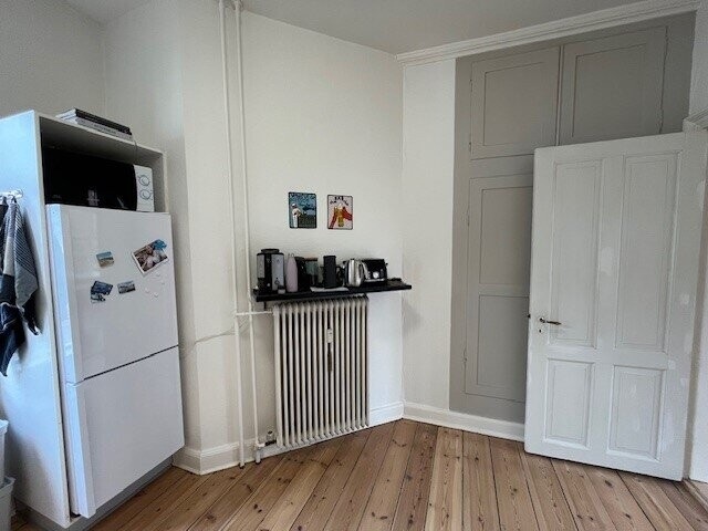 Lejligheden er rummelig og placeret kun to minutters gang fra både Biblioteket og Banegården. Den indeholder to meget lyse og velproportionerede stuer, som giver god plads til ophold. Køkkenet er stort og giver mulighed for at etablere en hyggelig spisekrog. En mindre mellemgang fungerer som et praktisk område, der eksempelvis kan anvendes som hjemmekontor. Badeværelset er af betydelig størrelse og er udstyret med bruseniche. Boligen har nye vinduer, smukke trægulve, dørtelefon, adgang til fælles vaskekælder og en fælles gårdhave.