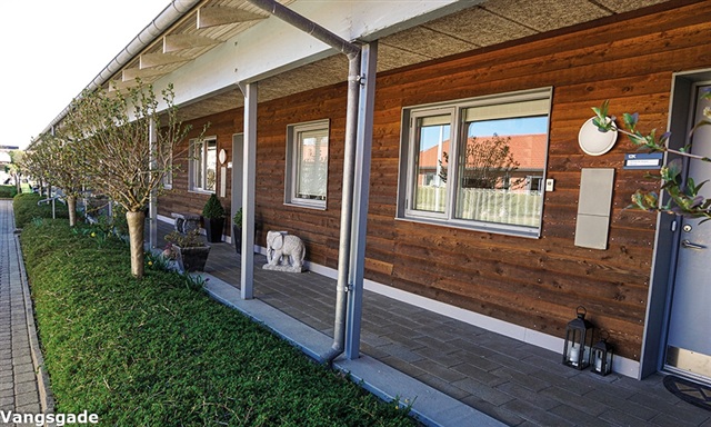 VangsgadeRÆKKEHUSE fra 2005, beregnet til familier og ældre. Med terrasser med bede samt med adgang til græsarealer. Både cykel- og redskabsskur.