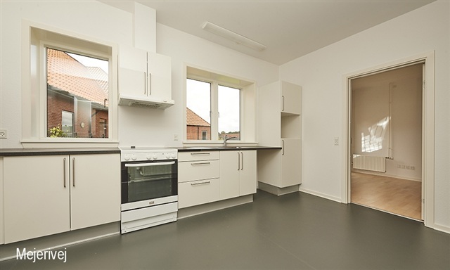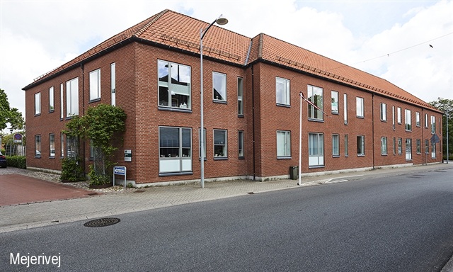 MejerivejETAGEBYGGERI opført i 2012, der fremstår moderne og nyt. Med dejlig gårdhave, hvor det sociale fællesskab kan holdes i gang. Der er elevator i boligafdelingen.