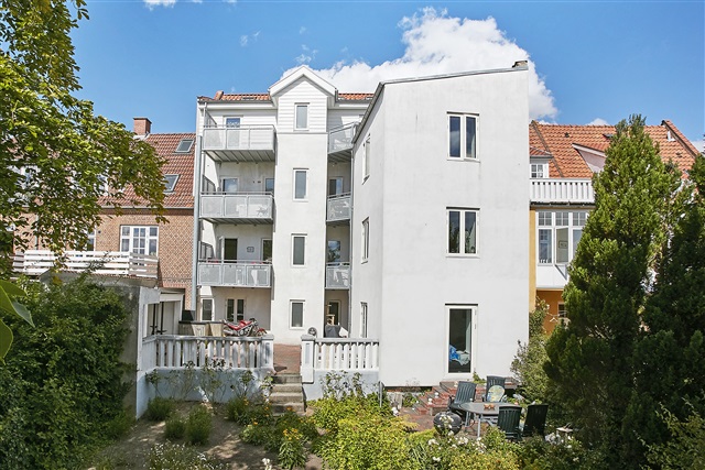 Lejligheden byder på en sydvendt altan samt adgang via dørtelefon, og samtidig er der tilhørende fælles gård- og haveanlæg. Boligen er energimæssigt opdateret med blandt andet nyt køkken/alrum, badeværelse, tag, vinduer, gulve og døre, som alle er moderniserede, hvilket sikrer en mere effektiv energiforbrug.Ejendommen, der er ældre, fremstår dog velholdt og er løbende renoveret, og den ligger i et ældre kvarter med en særlig charme og atmosfære. Fra adressen er der gåafstand på cirka fem minutter til både gågaden og diverse indkøbsmuligheder.