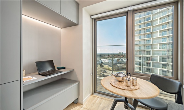 Denne 1-værelses lejlighed er særligt tilrettelagt med en række praktiske løsninger og byder samtidig på en dejlig, generøs altan. Køkkenet er udført i et moderne design med en velgennemtænkt planløsning, hvor der er rigelig skabsplads samt fuldt udstyret med alle nødvendige hårde hvidevarer, inklusive en opvaskemaskine. En mindre spisekrog kan udvides ved hjælp af en tillægsplade, så flere personer kan sidde samlet. Den integrerede seng er en sovesofa, der kombinerer komfort med funktionalitet gennem en god opbevaringsløsning. Desuden finder man yderligere opbevaringsmuligheder i form af skabe og klikskuffer, hvilket giver gode pladsforhold. En fleksibel arbejdsplads er også til stede i lejligheden i form af en flexdesk, der både kan fungere som skrivebord og som en hyggelig siddeplads. Badeværelset fremstår lyst og rummeligt med varme i gulvet, lyse klinker og en separat bruseniche. Det er en bolig, der virkelig skal opleves for at blive værdsat.
