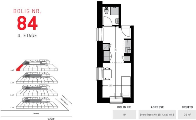 Samtlige lejligheder er indrettet som åbne rum med ekstra højt til loftet, hvilket sammen med det generøse naturlige lys skaber en lys og luftig atmosfære, hvor dagslyset udnyttes optimalt. I langt de fleste boliger finder man desuden fritstående træbjælker og én eller flere vægge med rå mursten, hvilket bidrager til en autentisk New York-inspireret stemning. Det skal understreges, at de viste billeder kun er vejledende og derfor ikke nødvendigvis afspejler det konkrete lejemål.