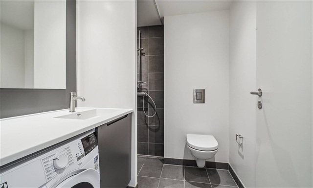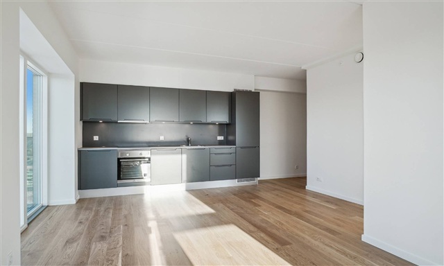 Denne 2-værelses lejlighed byder på en kombination af moderne faciliteter og en central placering i Herlev. Køkkenet, som er udført i en lava grå farve, er udstyret med integrerede hvidevarer, mens badeværelset er indrettet med en bruseniche og vaskefaciliteter. Derudover rummer boligen indbyggede skabe, og de smukke plankegulve tilfører rummet både elegance og en indbydende stemning. Lejlighedens placering højt oppe sikrer et godt lysindfald, luftighed og en attraktiv udsigt over byens tage.Ejendommen, kaldet Taghaverne, består af 135 moderne og kvalitetsbevidste boliger, som er placeret oven på Herlev Bycenter. Som lejer får man adgang til en fælles taghave, der rummer hyggelige områder til ophold og socialt samvær. Selvom boligen er centralt beliggende, opleves en behagelig ro, da bygningen er hævet over byens travlhed. Der er gode muligheder for parkering af både biler og cykler, lejeboliger har adgang til leje af parkeringspladser, ligesom der er installeret ladestandere til elbiler.