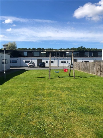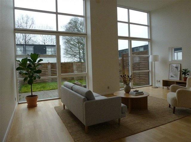 Dette rækkehus, der strækker sig over to etager, råder over en mindre terrasse samt en tilhørende have. I stueetagen findes et køkken med en rummelig spiseafdeling, en stue, et badeværelse samt et værelse. På førstesalen udgør et stort soveværelse hele det øverste plan. Boligen er placeret i et stille område med nem adgang til offentlig transport. De viste billeder stammer fra en bolig af tilsvarende type og er møbleret ved hjælp af AI.