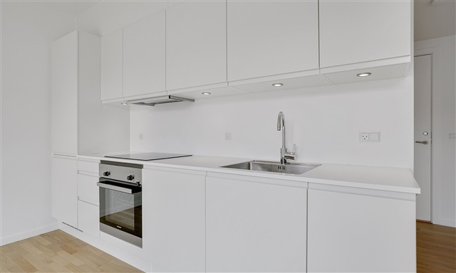De 3-værelses lejligheder byder på moderne køkken med hårde hvidevarer og vaskemaskine. Planløsningen giver god plads til både ophold og soveværelser og passer perfekt til par og små familier.