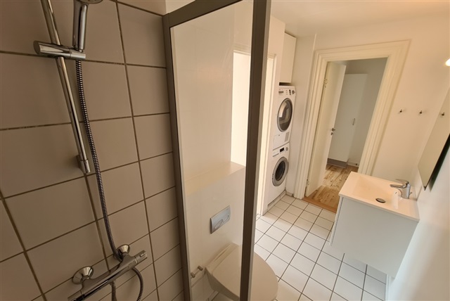 Denne lejlighed fremstår lys og særdeles velholdt efter en komplet renovering, hvor der er lagt lakerede askeparketgulve i samtlige rum. Soveværelset har god plads og er udstyret med rummelige indbyggede skabe. Køkkenet er lyst og indrettet med hvidt inventar, der inkluderer en opvaskemaskine, et stort kølefryseskab samt en mindre spiseplads. Badeværelset er udstyret med gulvvarme og hvide skabsmoduler samt faciliteter til vaskemaskine og tørretumbler. Det er ikke tilladt at holde husdyr i boligen.
