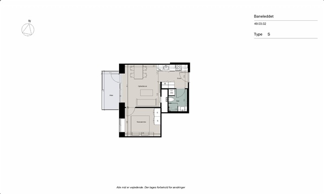 Lejligheden fremstår gennemført og veldisponeret med en entré, der fører direkte ind i et lyst køkken-alrum. Køkkenet er fuldt udstyret og hvidt i design, med køle-fryseskab, ovn, kogezone, emhætte samt opvaskemaskine og rigelig skabsplads til opbevaring. Den tilstødende stue er funktionelt indrettet med plads til både et spiseområde og en sofagruppe. Fra stuen er der åbning ud til en stor altan mod vest, hvor du kan nyde solen og den friske luft samtidig med, at du har udsigt over det nærliggende villaområde. Adgangen til det rummelige soveværelse får du også fra stuen, og her er plads til en stor seng. Foruden entréen har du adgang til badeværelset, der er udført i et tidløst og stilfuldt design med en separat bruseniche samt indrettet med både vaskemaskine og tørretumbler.Lejligheden er udstyret med gulvvarme, som kan reguleres individuelt i hvert rum, hvilket sikrer optimal komfort.