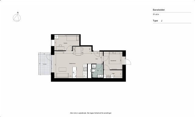 Det skal bemærkes, at billederne kan stamme fra en anden bolig, hvilket betyder, at indretningen, beliggenheden og udsigten kan variere. Dog er materialevalg og kvalitet ens for alle lejligheder i ejendommen. Plantegningen viser den præcise indretning af denne bolig.