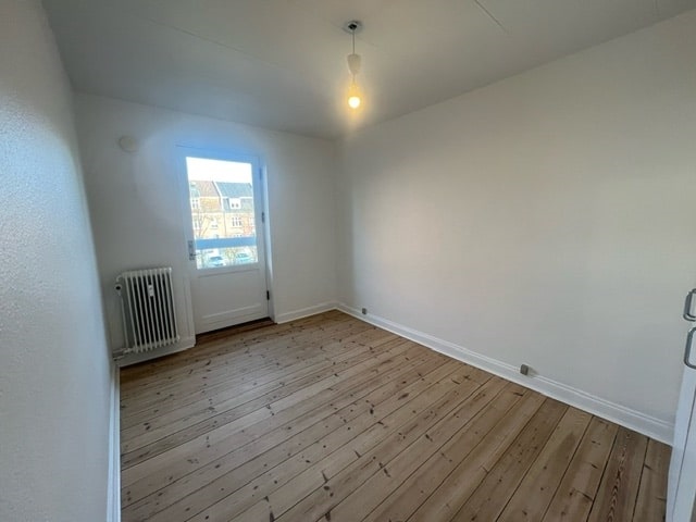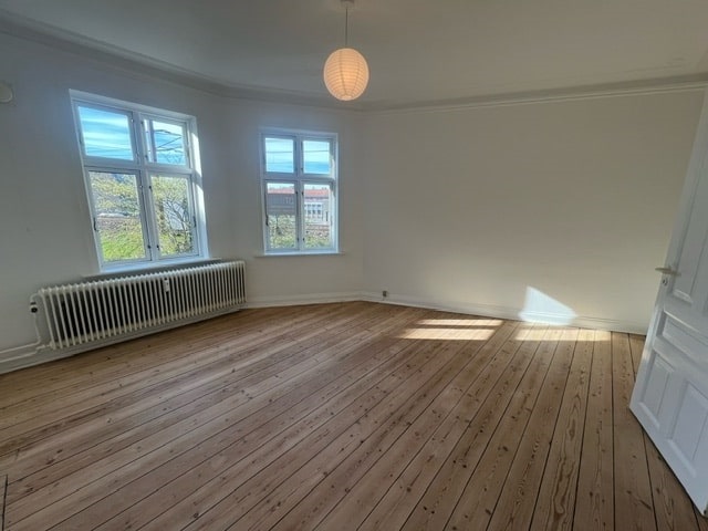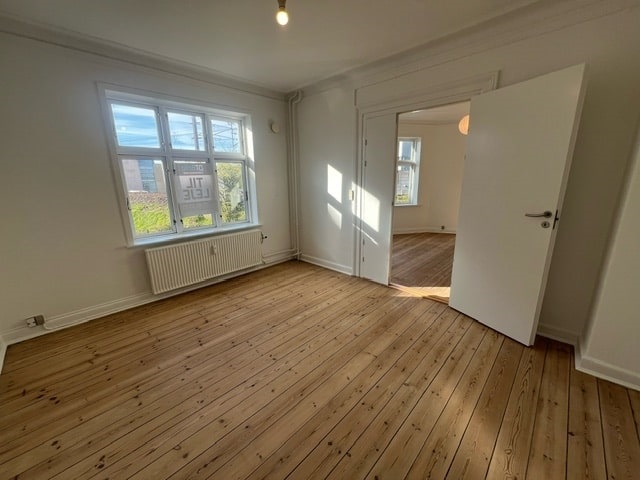 Lejligheden henvender sig primært til enten en enkeltperson eller et par, som ønsker et ekstra værelse samt lidt mere plads end normalt. Boligen befinder sig midt i byen, hvilket giver nem adgang til byens mange faciliteter.Beboelsesarealet udgør 88 m² og er udformet med fokus på funktionalitet. Vinduerne i lejligheden er alle helt nye. Indretningen består af to rummelige stuer, et soveværelse, et nyere køkken, et badeværelse samt en central entré. Den ene af stuerne kan med fordel benyttes som kontor, ekstra værelse eller soveværelse efter behov. Der er smukke afhøvlede trægulve i de to stuer, soveværelset samt i entréen, og boligen fremstår særligt rummelig med sin høje loftshøjde.