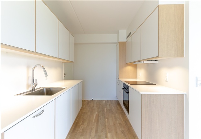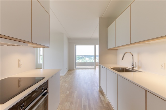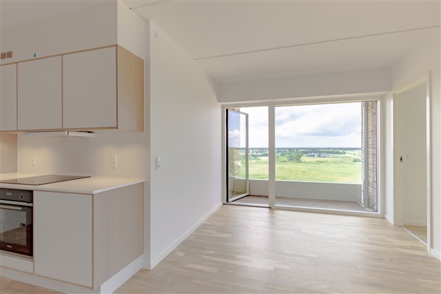 Skøn 3-værelses lejlighed på 13. etage med hele to altaner. Lejligheden har stilrent køkken fra Invita, som er udstyret med hårde hvidevarer fra Siemens. I forlængelse af køkkenet er et dejligt opholdsrum med udgang til begge boligens altaner. Her er der rig mulighed for at nyde en fredelig udestund i den friske luft.