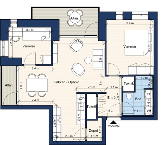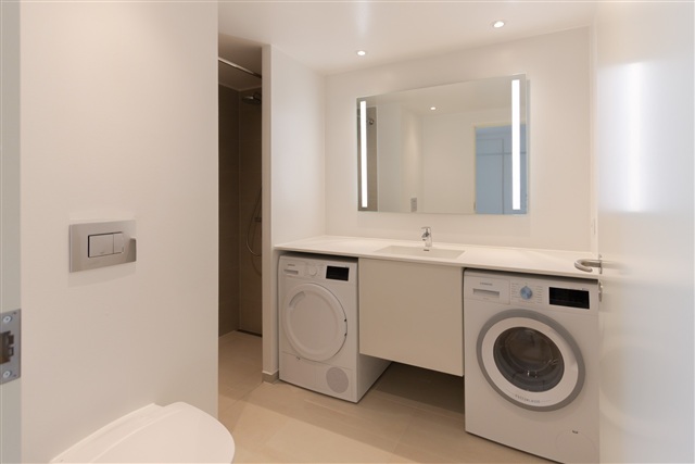 Der er gulvvarme i alle rum, et depotrum og i begge værelser er installeret skabe. Derudover er der på badeværelset vaskemaskine og tørretumbler fra Siemens i energiklasse A++.