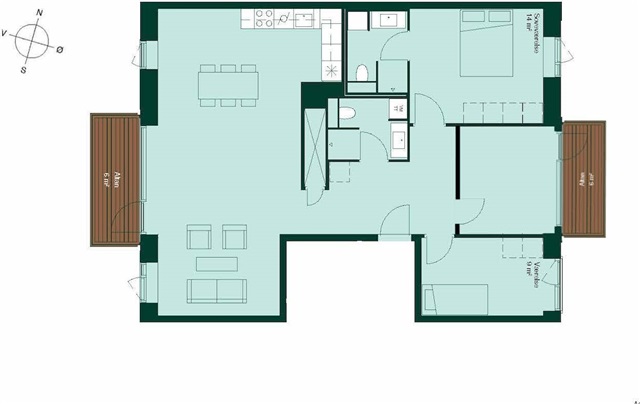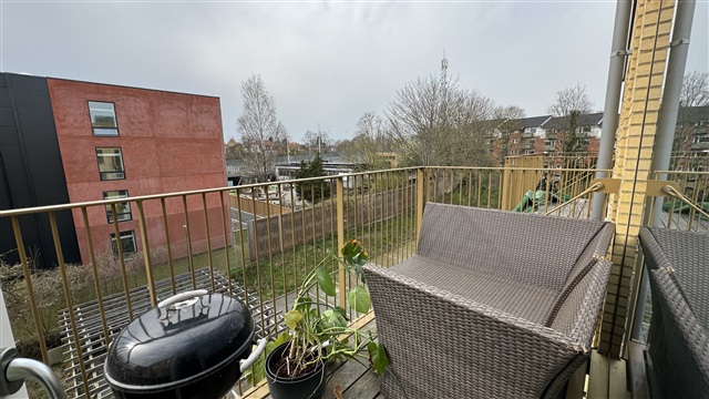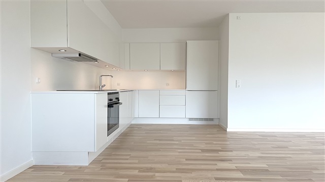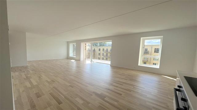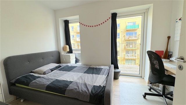 Lejligheden har en entré, som giver adgang til tre soveværelser på den ene side. Ét af disse soveværelser har en stor altan vendt mod øst, mens et andet indeholder et privat badeværelse med bruseniche. Fra entréen er der desuden adgang til endnu et badeværelse med bruseniche, som også rummer en vaskemaskine og tørretumbler. Til venstre fra entreen findes det åbne køkken, der smelter sammen med den tilstødende stue, hvorfra man kan gå ud på en skøn terrasse med vestlig orientering. Ejendommen er beliggende i nærheden af både gode shoppingmuligheder, offentlig transport, skole, daginstitutioner samt grønne arealer og parker. Bemærk venligst, at nogle billeder ikke viser netop denne lejlighed, men en lejlighed med tilsvarende plantegning og lignende indretning.
