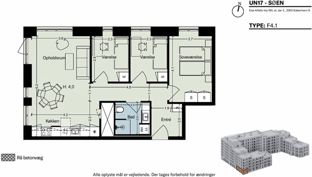 UN17 Søen - 4 vær. lejebolig med højt til loftet, og udgang til den grønne gård – Ideel familie- eller delebolig