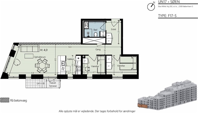 Det skal bemærkes, at billederne kan stamme fra en af de andre lejligheder i ejendommen, hvorfor der kan være variationer i både indretning, udsigt og beliggenhed. Materialeudvælgelsen og den overordnede kvalitet er dog ens for samtlige boliger i komplekset. For at se den specifikke indretning for denne lejlighed henvises til den medfølgende plantegning.