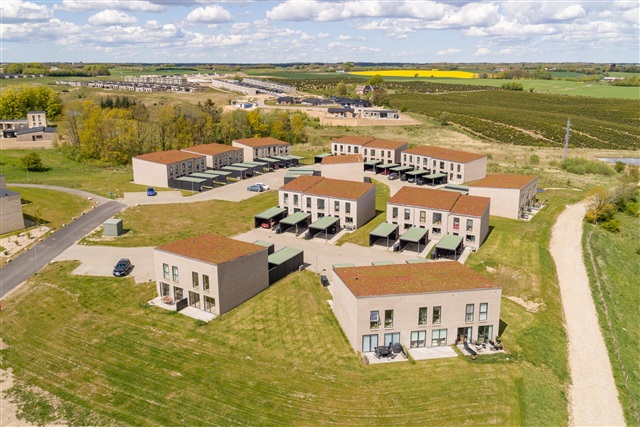 På badeværelset på øverste etage findes der også gulvvarme, og boligen har et ventilationsanlæg, der bidrager til et optimalt indeklima. Under trappen til 1. sal findes et mindre depotrum til ekstra opbevaring. Hvert hus har en carport udstyret med sensorstyrede loftslys, og der er desuden et privat skur, som er velegnet til opbevaring af blandt andet cykler. Foran huset kan man etablere en intim gårdhave. Udenfor ved hoveddøren er der både vandhane og ekstra strømudtag. På husets haveudside er de private terrasser afgrænset med hække, så man får en afskærmet og rolig uderum. Tagene i hele området er beklædt med grøn Sedumbeplantning, der ikke blot er dekorativ men også funktionel ved at kunne opsuge op til halvdelen af regnvandet, hvilket mindsker belastningen på det øvrige afvandingssystem.
