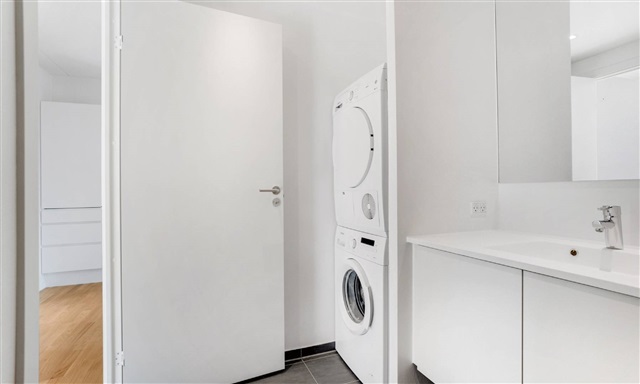Lejligheden præsenterer sig med fire rummelige værelser, hvor en stor og lys køkken-alrum indbyder til fælles samvær. Fra dette opholdsrum er der adgang til en altan, som giver mulighed for udendørs ophold. Badeværelset er rummeligt og udstyret med en kombineret vaskemaskine og en bruseniche. Tre behagelige soveværelser hører til boligen, hvoraf det ene har direkte adgang til en privat terrasse.Ejendommen, opført i 2019, tilhører det område på Krogshøjvej, der går under navnet Købmandsgården. Denne del af ejendommene kendetegnes ved store vinduer, som sikrer et godt lysindfald og en flot udsigt. Bygningen har arkitektoniske elementer som udkragende facader og en forskelligartet højde, der varierer op mod ni etager, hvilket giver en varieret og levende fremtoning. På trods af det æstetiske ydre er boligen designet med funktionalitet for øje og opfylder moderne familiers krav. Der tilhører ejendommen en forhøjet atriumgård med planter og siddepladser, som skaber et grønt og indbydende miljø. Boligerne har en moderne planløsning og er opført med materialer af høj kvalitet. De 154 forskellige lejligheder findes i størrelser fra 57 til 133 kvadratmeter, med alt fra to til fem værelser, hvilket appellerer til en bred skare af beboere - fra singler og børnefamilier til unge par og seniorer. Lejlighederne er blandt andet udstyret med hårde hvidevarer fra Siemens, køkkener fra Svane samt praktisk indbyggede skabe i soveværelserne. Yderligere faciliteter inkluderer elevator, gulvvarme, dørtelefon, cykelparkering og mulighed for at leje en parkeringsplads i kælderen.