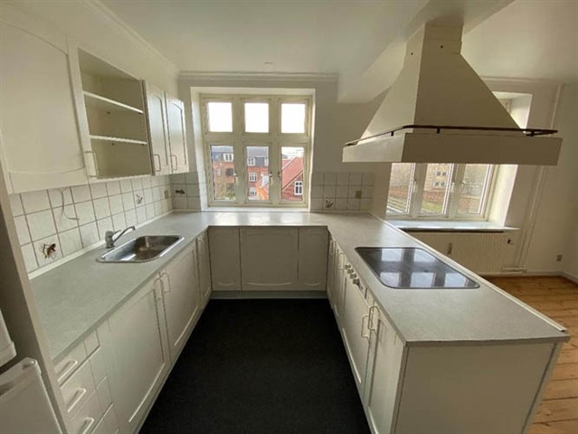 Der medfølger både opvaskemaskine og kombinérbar vaskemaskine med tørretumbler. Bag ejendommen findes et fælles gårdmiljø, som deles af de tre lejligheder i ejendommen. Denne lejlighed er placeret i et attraktivt villakvarter midt i Kolding by.