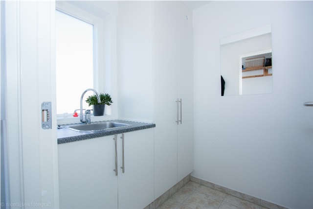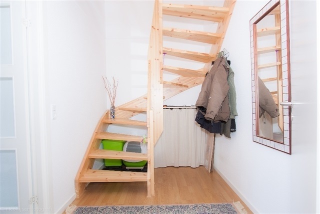 I en udstykning, der er særligt velegnet for familier med børn, ligger denne halvdel af et dobbelthus, som passer godt til en mindre børnefamilie. Boligen strækker sig over to etager og byder på en entré med adgang til et gæstetoilet. Køkkenet er integreret i en åben løsning mod stuen, hvorfra der er direkte udgang til en privat terrasse samt en tilhørende have.På førstesalen findes et soveværelse, et badeværelse og to værelser, der er ideelle som børneværelser. Husets indretning er præget af lyse nuancer med hvide vægge, hvide køkken- og badeværelseselementer samt laminatgulve. Forbruget til varme og el anslås, da betalingerne går direkte til forsyningsselskaberne.