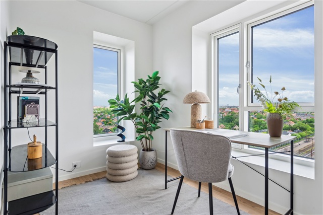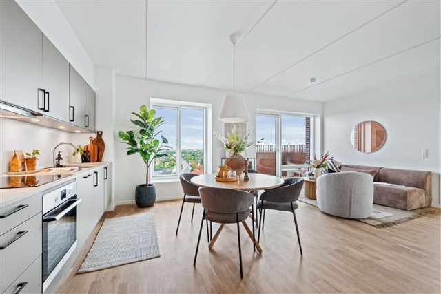 I Nordtårnet finder du lejligheder, der kombinerer tæt kontakt til naturen med byens livlige atmosfære lige i nærheden. Bygningen, som strækker sig over 14 etager, rummer 2- og 3-værelses boliger på mellem 73 og 86 m², hvor varme farvetoner, smarte indretninger og kvalitetsmaterialer skaber en hjemlig atmosfære. Boligerne egner sig både til singler, par og små familier, og her er plads til alle.Lejlighederne er præget af lyse og luftige rum, hvor gulvvarme sikrer varme fødder året rundt og høj komfort i hele boligen. Køkken-alrummet fungerer som samlingspunktet i hjemmet med plads til både daglige samtaler, lektier ved bordet og hyggelige middage. Her kan man nyde morgenens friskbagte brød eller udfolde sig med madlavning i rolige omgivelser.