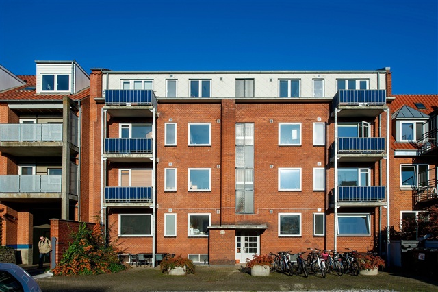 Denne 3-værelses lejlighed ligger på den høje stueetage på Møllegade, i umiddelbar nærhed af gågaderne, hvor der findes mange gode indkøbsmuligheder. Skoven og søen nås nemt på en kort cykeltur, hvilket giver gode rekreative muligheder tæt på boligen.Boligens planløsning består af to lyse stuer og et stort soveværelse, som er udstyret med en integreret skabsvæg. Køkkenet er praktisk indrettet og byder på rigelig plads til madlavning. Badeværelset er forsynet med en bruseniche. Ejendommen stiller desuden fælles faciliteter til rådighed, herunder to vaskemaskiner samt en tørretumbler.