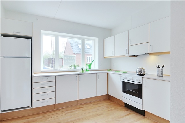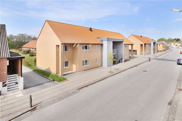 I Tørring, i Hedensted kommune, finder man afdeling 54, som byder på attraktive familieboliger placeret tæt på både byliv og naturskønne områder.Boligerne her fremstår med et åbent køkken, der glidende forbinder sig til stuen. Køkkenet er udstyret med hvide elementer med kontrasterende bøgekant fra HTH og inkluderer køle-fryseskab, komfur og emhætte. Mulighed for at installere opvaskemaskine foreligger, men kræver ansøgning. Badeværelset har grå klinker med gulvvarme, fliser i brusenichen og en elegant håndvask placeret i et skabsarrangement. Der er også plads og installation til vaskemaskine og kondenstørretumbler, som kan opsættes efter ansøgning. Boligerne i stueplan råder over privat have med tilhørende terrasse, som lejerne selv står for vedligeholdelsen af. Lejlighederne på første sal i Aagade har derimod mulighed for lidt beplantning på altanen samt et repos over trappen, der er stort nok til et cafébord og nogle urtepotter. Til hver bolig hører et skur. Forbruget håndteres sådan, at vand opkræves via udlejeren som et månedligt a conto-beløb, mens el og varme faktureres direkte af leverandørerne.