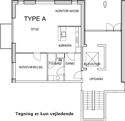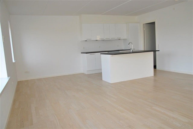 Lejligheden fremstår som en harmonisk sammensmeltning af nutidig komfort og et lyst, indbydende miljø.Indgangen til boligen består af en generøs entré, der åbner op mod et stilfuldt badeværelse, som er udstyret med både bruseniche og gulvvarme samt en integreret vaskemaskine for øget funktionalitet. Den åbne planløsning mellem stuen og køkkenet skaber et venligt og socialt rum, hvor køkkenets moderne faciliteter omfatter køle-/fryseskab, ovn, kogeplader, emhætte og opvaskemaskine, hvilket dækker alle daglige behov.
