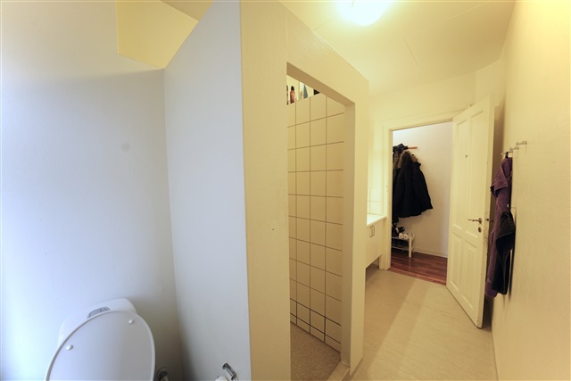 Lejlighedens badeværelse har en dejlig rummeligbrusekabine og et større vinduesparti, så ma har god mulighed for at få luftet godt ud. Dernæst er der også egen vaskemaskine i lejligheden. Udover lejlighedens badeværelse som selvfølgelig også rummer et toilet, så har lejligheden yderligere et toilet.