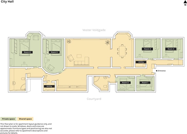 City Hall is centrally located and boasts a total of six rooms (two couples rooms and four single rooms), a large kitchen big enough to include a dining space and a massive stove, two full bathrooms featuring either a shower or soaking tub, a laundry room, an elegant dining space with floor to ceiling shelves and a living room that’s optimal for hosting events. In fact, a lot of our events have been hosted here simply because the apartment’s flow allows for both privacy and togetherness.High-quality bed with bedspread, duvet and pillows
