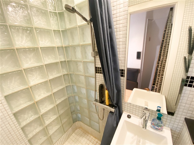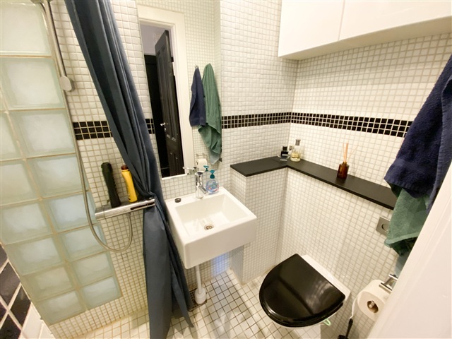 Denne lejlighed fremstår med en gennemtænkt og funktionel indretning, hvor både planløsning og moderne elementer er nøje integreret. Ved ankomsten træder man ind i en rummelig fordelingsgang med et entréområde, som giver adgang til boligens enkelte rum. Badeværelset er smagfuldt udsmykket med hvide klinker og et elegant bruseafsnit, hvor væggene er pyntet med klare sten, hvilket tilfører et eksklusivt touch til rummet.Boligens stue udgør et centralt opholdsområde, der imponerer med sin store rummelighed og det naturlige lys, der strømmer ind gennem et stort vinduesparti. Her er plads til både en generøs sofa og et spisebord med god siddeplads, hvilket gør stuen ideel til både afslapning og socialt samvær.