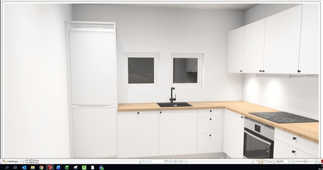 Før indflytning vil der blive opsat et nyt køkken med opvaskemaskine samt et nyt badeværelsesmøbel, som er udført i samme stil som vist på billederne i annoncen.