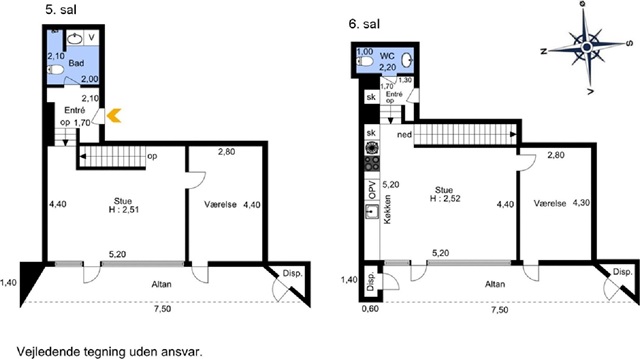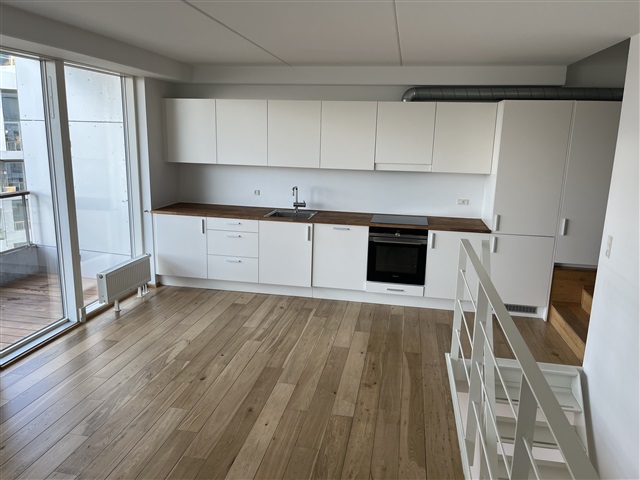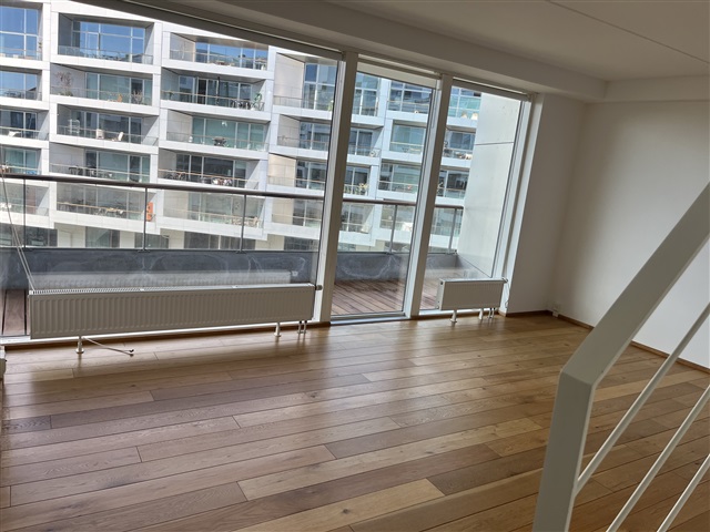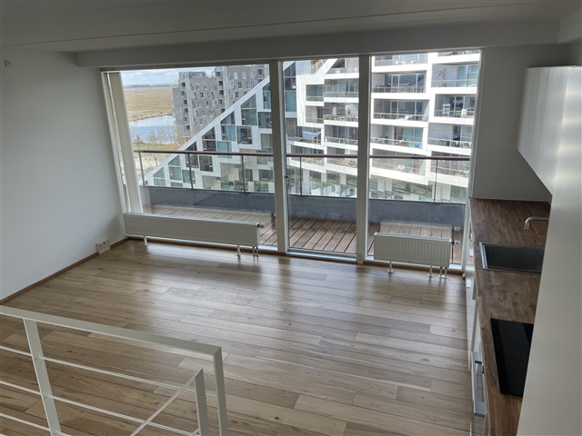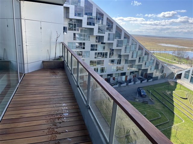 Denne 4-værelses lejlighed ligger på 5. og 6. sal og har fra de to store altaner en fantastisk udsigt over Kalvebod Fælled.