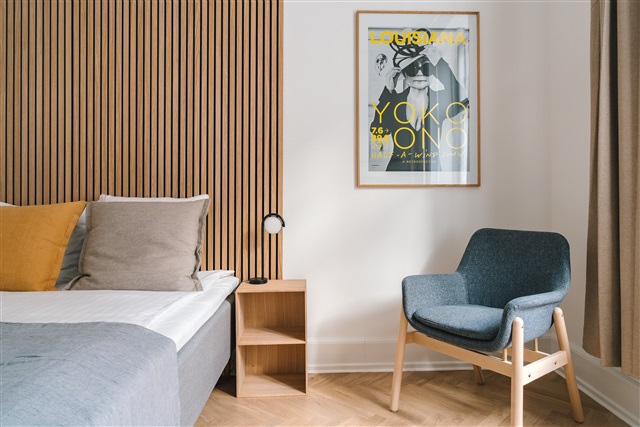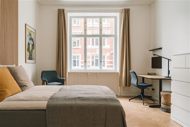 This classy city centre home consists of five spacious single rooms, two shared bathrooms and one open kitchen with a cozy lounge area. The apartment is located on the 1st floor of a monumental building and is in the same building as our popular Loft, Blox and Vestervold apartments. All bedrooms have big windows on the quiet sidestreet called 'Christiansborggade'. A cosy coffeebar on the ground floor of the building opened in the summer of 2020, where there is seating outside to enjoy a ray of sunshine and some good company. The apartment is a stone throw away from the canal, where you can swim in summer, and around the corner of Tivoli, BLOX and the Royal Library. The new metro line which runs all around the city centre and the main station are a 10 min walk away.