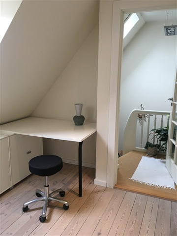 Muligheder: Du får 2 sammenhængende, lyse rum til læse/opholds/soveværelse på samlet 30 kvm - og privatliv. Direkte adgang fra husets hoveddør via trappe til førstesalen giver yderligere plads til privatliv i det daglige.