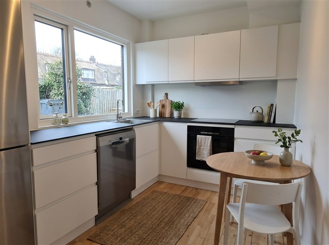 I hjertet af Rungsted Kyst findes denne indbydende lejlighed med fire værelser, der er opdateret til moderne standard og placeret i rolige omgivelser lige overfor Rungsted Havn. Det skal bemærkes, at stuen aktuelt er opdelt med en skillevæg, hvorfor billederne af dette rum ikke afspejler dets fulde størrelse.Boligens 93 kvadratmeter omfatter et nyere, rummeligt køkken, et tilsvarende nyt badeværelse, et stort hovedsoveværelse, to yderligere værelser samt en betydelig stue, der præsenterer panoramavinduer, som giver rummet et unikt og lyst indtryk. Køkkenet er veludstyret med alt, hvad man behøver for at lave mad og opbevare varer, herunder ovn, kogeplader, emhætte, opvaskemaskine samt et praktisk køle-/fryseskab, hvor det gennemtænkte layout sikrer god funktionalitet og behagelig plads til madlavning.
