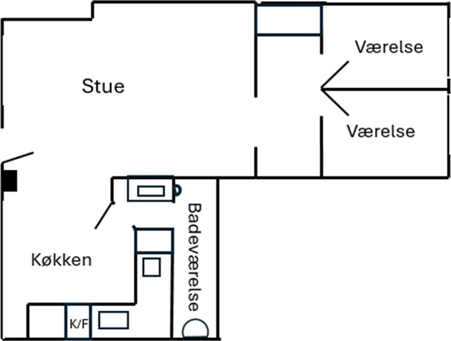 Boligen er beliggende i stueplan med egen direkte indgang og består af entré, stue, 2 værelser, badeværelse samt køkken-alrum med alle hårde hvidevare.