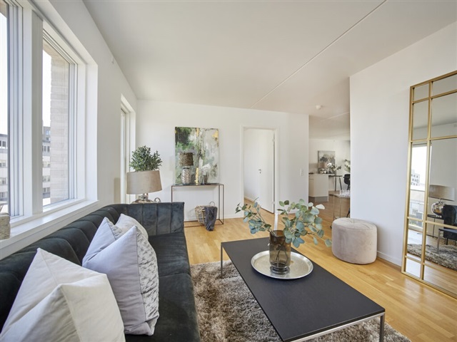 Denne moderne fireværelses lejlighed er nyopført og placeret i det populære, nye område ved Københavns Havn, kendt som "Teglværksbyen". Området strækker sig i umiddelbar forlængelse af Enghave Brygge og ligger lige overfor den grønne Amager Fælled. Her er der nem adgang til vandet, som indbyder til forskellige fritidsaktiviteter såsom kajaksejlads, fiskeri og svømning i sommerhalvåret. Fremover vil der desuden blive anlagt en kanal, der strækker sig helt frem til bygningen.I nærområdet er der mange forskellige faciliteter, samtidig med at man har kort afstand til storbyens tilbud. Med cykelringen, der følger kajkanten rundt om hele Københavns Havn, når man eksempelvis Rådhuspladsen på under femten minutter. Nyåbnede metrostationer ligger kun et kort stykke fra ejendommen, og Sydhavn S-togsstation befinder sig cirka 900 meter derfra.