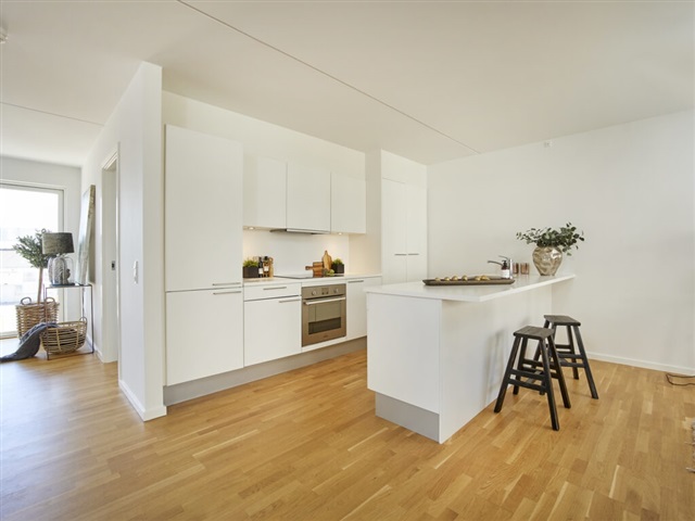 Lejligheden består af en åben entré med indbygget garderobeplads, et lyst køkken-alrum udstyret med alle nødvendige hårde hvidevarer samt direkte adgang til en altan. Den rummelige stue har fransk altan, og tre lyse værelser, alle med indbyggede skabe, hvoraf det ene også har udgang til altan. Badeværelset er af god størrelse og indeholder bruseniche samt plads til vaskemaskine og tørretumbler.