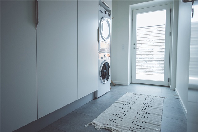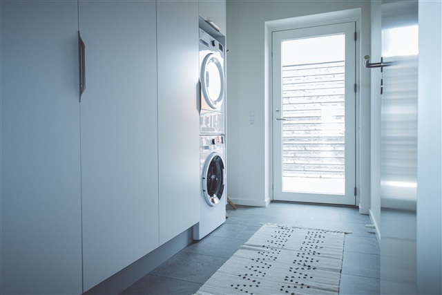 Ved indgangen mødes man af en praktisk entré, der integreres med bryggerset. Her er der plads til overtøj og fodtøj samt faciliteter til vaskemaskine og tørretumbler, hvilket gør dagligdagen lettere og mere overskuelig. Foran huset ligger en hyggelig forhave med flisebelægning, som byder på plads til både leg og ophold. Et udhus giver mulighed for opbevaring af cykler, havemøbler og redskaber. På ejendommens egen parkeringsplads, som ligger lige ved boligen, kan bilen stå trygt.