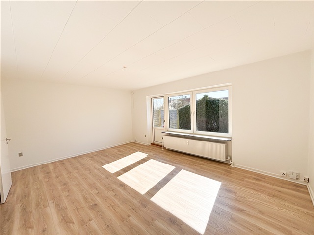 Dette rækkehus i Vodskov rummer 54 kvadratmeter fordelt på to værelser samt en terrasse. Køkkenet er indrettet med hvide elementer og har lyse klinker på gulvet, mens stuen præsenterer sig med lyse trægulve og en rummelig indretning.Køkkenets design er enkelt og praktisk med de hvide elementer og det lyse klinkegulv, og stuen fremstår som et lyst og passende opholdsrum. Terrassen fungerer som et værdifuldt ekstraareal til boligen.