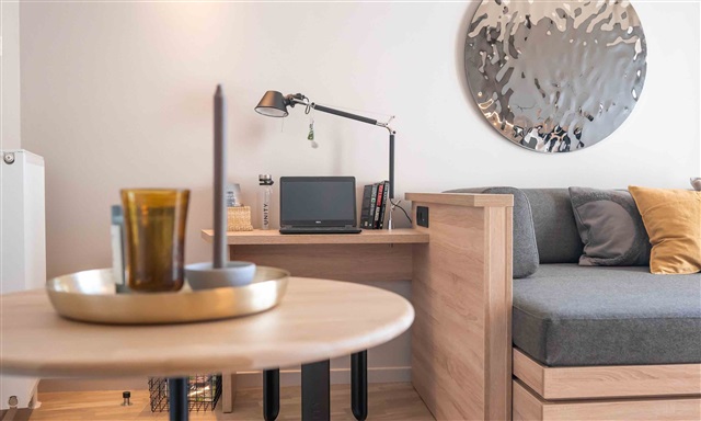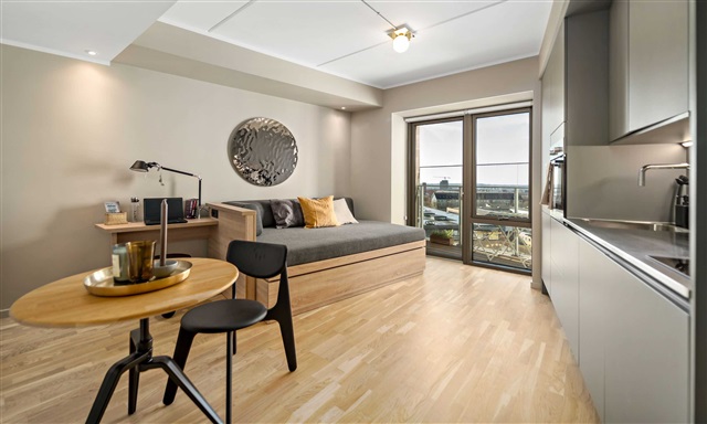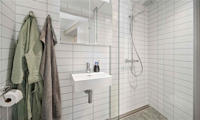 Denne rummelige 1-værelses lejlighed er særligt tilpasset med mange velgennemtænkte detaljer og byder desuden på en dejlig stor altan. Lejligheden indeholder et åbent køkkenalrum med et moderne og enkelt køkken, der er indrettet optimalt og udstyret med alle nødvendige hårde hvidevarer, inklusive en opvaskemaskine. Der er en hyggelig spiseplads med en ekstra tillægsplade, så der kan plads til flere gæster ved bordet. Soveområdet består af en 140x200 cm seng, som også fungerer som sofa, og som er både komfortabel og praktisk med masser af opbevaringsplads integreret.Derudover er der gode opbevaringsmuligheder i form af skabe og klikskuffer, og lejligheden rummer også et skrivebord. Badeværelset er lyst og rummeligt med flotte klinker på gulvet, som også har gulvvarme, og det indeholder en separat bruseniche. Samlet set er det en bolig, som byder på både funktionalitet og komfort og bør opleves for at kunne værdsættes fuldt ud.