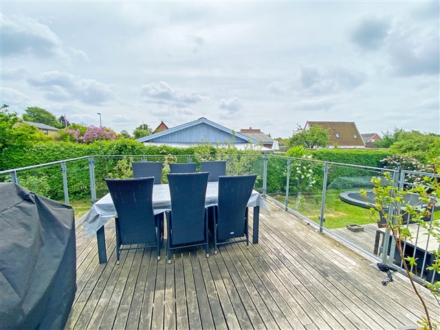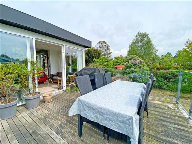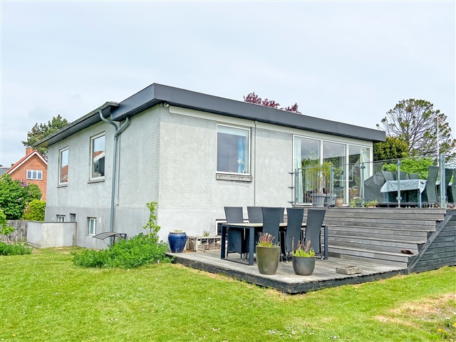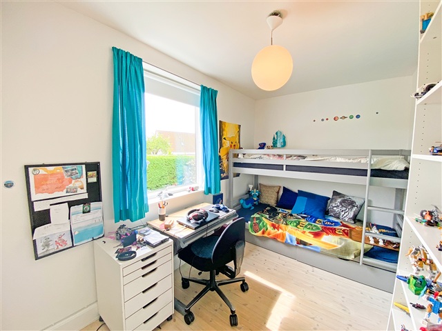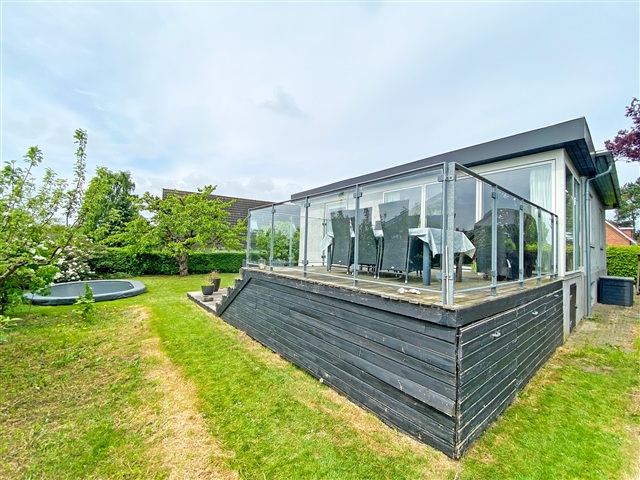 Denne møblerede villa i ét plan byder på en hyggelig have med rig mulighed for leg og aktiviteter, herunder en nedgravet trampolin, der indbyder til hop og sjov. Haven er prydet med ældre frugttræer og flere dejlige terrasser, hvor sommeraftener kan nydes i rolige omgivelser. Lejemålet står klar fra den 1. august 2026 og kan lejes for en periode på 1 til 2 år.Indretningen rummer en stor og rummelig entré med god plads til opbevaring af overtøj. Den lyse og rummelige stue har dobbeltdøre, som leder ind til et åbent køkken-alrum, der igen har direkte udgang til haven og den brede træterrasse. Boligen indeholder tre soveværelser samt et gæstetoilet. I underetagen findes et stort badeværelse med bruseniche og vaskefaciliteter, to anvendelige disponible værelser samt yderligere rum til opbevaring eller andre formål.