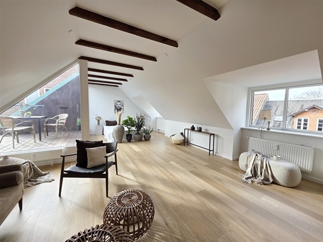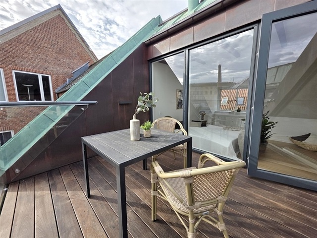 Denne fantastiske lejlighed er en et værelses, men med usædvanlig meget plads. Der er en dejlig rum fordeling, og både opvaskemaskine, mikroovn, tørretumbler og vaskemaskine. Som prikken over i'et er der yderligere en skøn østvendt tagterrasse (3,40m x 2,80m), så du til enhver tid kan nyde et friskt pust i rolige rammer.
