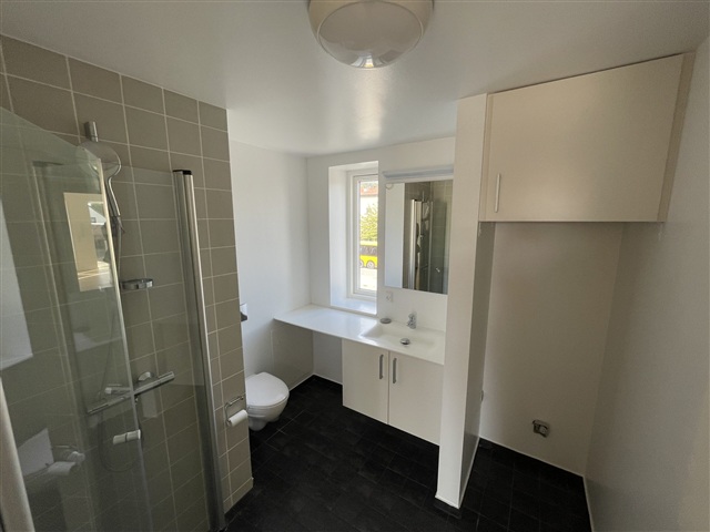 Dette attraktive lejemål er beliggende ovenpå Rema 1000, hvilket gør hverdagen både bekvem og praktisk med dagligvareindkøb lige ved hånden. I ejendommen er der adgang til en lækker tagterrasse med rig mulighed for at nyde solen, slappe af med en kop kaffe eller mødes til hyggeligt samvær med ejendommens andre beboer.Lejligheden er en stor et værelses og byder på en moderne indretning med gode materialer og en lys atmosfære, der skaber en indbydende og hjemlig stemning. Lejligheden er udstyret med alle de nødvendige hvidevarer til en komfortabel hverdag. Køkkenet indeholder køle-/fryseskab, keramiske kogeplader samt ovn. Lejer her desuden mulighed for at medbringe egen vaskesøjle.