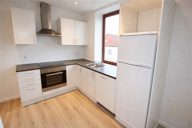 I Kolding City er denne lejlighed til leje, hvor du får adgang til en entré samt et badeværelse, der er udstyret med vaskemaskine. Lejligheden rummer et soveværelse, en stue samt et køkken, som indeholder ovn, kogeplade, emhætte, opvaskemaskine og et kombineret køle- og fryseskab. Husdyr kan tillades efter godkendelse, forudsat at de ikke generer de øvrige beboere. Det skal bemærkes, at der ikke følger en parkeringsplads med lejemålet, men der findes mulighed for at leje plads i de offentlige parkeringsanlæg i nærområdet via kommunen.