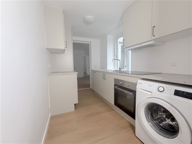 Denne lejlighed fremstår nymoderniseret med et lyst og tidssvarende udtryk, hvor der er anvendt kvalitetsmaterialer og en praktisk indretning, der tilgodeser funktionaliteten. Boligen er særligt velegnet til enten en enkeltperson eller et par, som ønsker at bo centralt med adgang til moderne bekvemmeligheder.Indretningen rummer en rummelig opholdsstue, der uden problemer kan rumme både sofaområde og spiseplads. Sovekammeret er regulært og giver gode muligheder for indretning efter behov. Det nyinstallerede køkken er moderne og udstyret med både opvaskemaskine og integreret vaskemaskine. Badeværelset fremstår stort og funktionelt med en separat bruseniche og et design, der holder sig tidløst. Gulvene er flotte, og samtlige overflader i boligen er lyse, hvilket bidrager til en behagelig atmosfære.