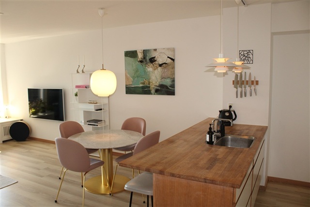 At bo på Holmen giver dig let adgang til vandet, hvilket gør det nemt at komme afsted på en dukkert om morgenen, tage på kajaktur eller nyde en stille stund på paddleboard. Området er i stadig udvikling og byder blandt andet på street food-markeder, Michelin-restauranter, Operaen samt et planlagt vandkulturhus på Papirøen. Derudover findes der en grøn oase i form af den nye Operapark.Lejligheden på Bohlendachvej er lys, rummelig og byder på en dejlig terrasse, hvor solen kan nydes. Beliggende kun et øjeblik fra kanalerne, fremstår miljøet som en påmindelse om sydeuropæisk varme og atmosfære. Det moderne hjem indeholder en stor entré med rigelig plads til både overtøj og sko. Køkkenet er åbent mod det store opholdsrum, som fungerer som et centralt samlingspunkt med god plads til familiens måltider og sociale stunder. Her kan der både indrettes med spisebord og sofa, og i sommermånederne er terrassen et oplagt supplement, der åbner op som en yderligere del af fællesområdet.